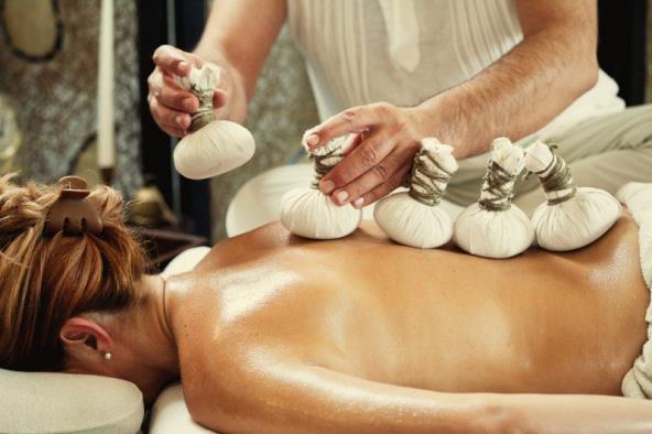 Herbal spa tretman je poseban zbog pamučnih jastučića napunjenih kombinacijom mlevenog đumbira, lavande, ruzmarina, kima i morske soli. Nakon što se zagreju na vreloj pari ili u keramičkoj posudi, ova topla izuzetno mirisna, biljna kombinacija pored aromaterapeutskih dejstava ima i fitoterapeutski efekat.