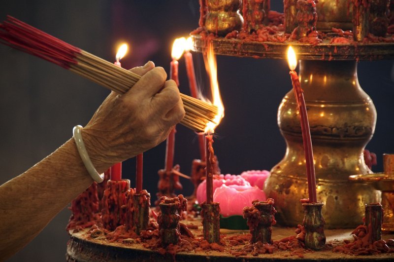Taoistički majstor Sung Jin Park je možda najbolje opisao kontekst Tri blaga, koristeći metaforu goruće sveće. Materijal od koga je sveća napravljena, osnova njene funkcije, jesu vosak i fitilj. Oni predstavljaju Jing sveće, zgusnutu energiju. Plamen sveće je izraz Chi, zato što se radi o energetskoj aktivnosti sveće. Kada se Jing istroši, Chi nema više na čemu da gori, i sveća biva sagorena. Sjaj koji sveća stvara, izraz je Shen-a. Povezanost sva Tri blaga može se bolje razumeti u sledećem poređenju: što su kvalitetniji vosak i fitilj, sveća će goreti postojanije i jačom svetlošću, a njen sjaj će biti upečatljiviji.
