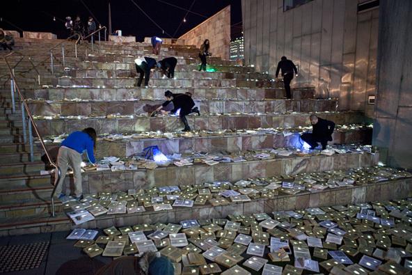 Malom ali efektnom instalacijom u inače užurbanoj ulici Flinders, intrigantno udruženje umetnika pokušalo je da skrene pažnju javnosti na naše lutanje u mraku, stagniranje... oblikujući put od knjiga i posebnog LED osvetljenja.