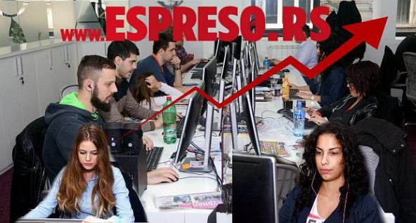 Zahvaljujući odličnim rezultatima postugnutim za samo dve i po godine koliko ESPRESO.RS postoji, portal je daleko najbrže rastući portal na tržištu. Ovome su najviše doprineli posetioci sajta koji su prepoznali odličan autorski sadržaj i nagradili ga svojim poverenjem i lojalnošću.