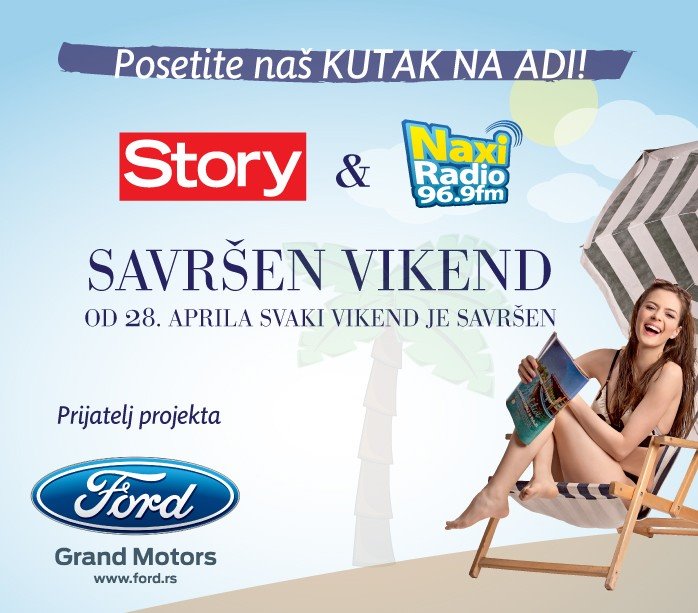 Story magazin u subotu 28. aprila 2012. godine postavlja kutak za svoje čitateljke na Adi Ciganliji u kome će se od 11 do 17h organizovati brojne zanimljivosti i promocije. Kutak se nalazi u kafiću Koketa na Makiškoj strani, između kafića Sunset i Red Shoes. One dame koje neće biti u mogućnosti da uživaju i zabave se sa nama sve će moći da isprate na Naxi radiju u emisiji "Savršen vikend" koju će voditi urednica Story-ja Beba Dragić i voditelj Naxi radija Dejan Avramović. Generalni sponzor projekta je Ford koji će organizovati zanimljive akcije tokom vikenda za sve posetioce.