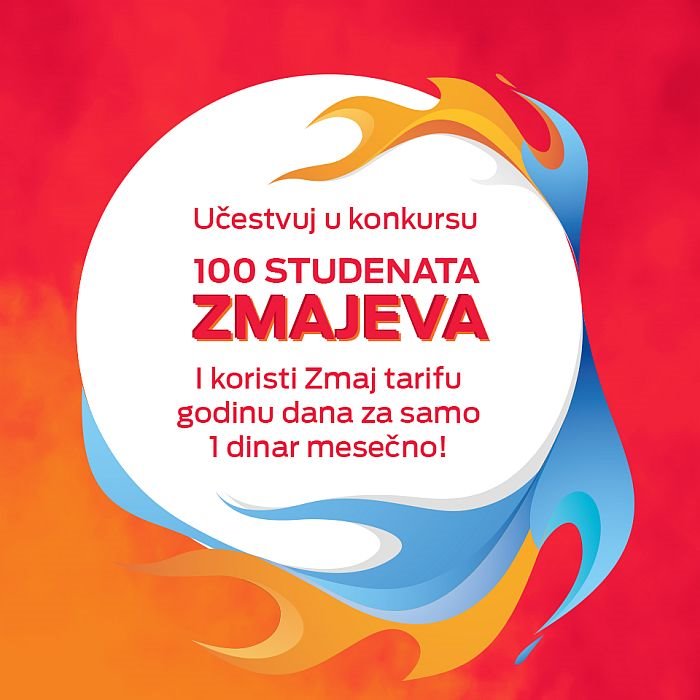 Kompanija Telekom Srbija raspisala je konkurs „100 studenata zmajeva“ na zvaničnoj stranici društvene mreže Fejsbuk u okviru kojeg će najbolji studenti moći da osvoje vrednu nagradu – korišćenje Zmaj tarife po ceni od 1 dinar mesečno, u trajanju od 12 meseci. Konkurs je namenjen studentima osnovnih studija koji se obrazuju na visokoškolskim ustanovama, akreditovanim na teritoriji Republike Srbije. Uslov za prijavu je da učesnik konkursa studira najmanje godinu dana, da ima potpisan ugovor za Zmaj tarifu i da dostavi lične podatke, kao i fotografiju uverenja o prosečnoj oceni.