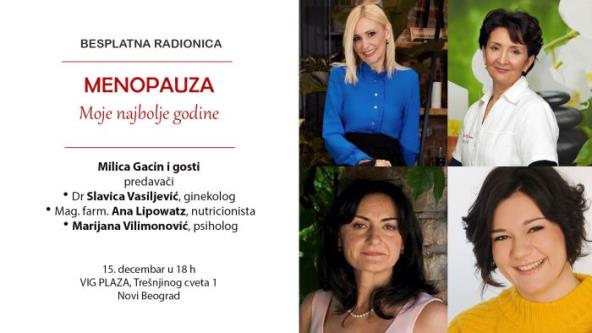 Sve što želite da pitate o menopauzi možete na prvoj besplatnoj radionici MENOPAUZA-MOJE NAJBOLJE GODINE koja je zakazana za 15.decembra od 18 do 20 h u prostoru VIG Plaza.