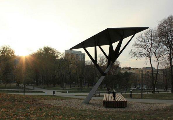 Ovo je drugi solarni punjač koji je postavljen u Beogradu, a sastoji se od prijemnika i klupe. Osnovna funkcija prijemnika, koji je koncipiran u vidu artificijalnog drveta je da transformiše solarnu energiju u električnu. Celo "drvo" je dizajnirano tako da solarni paneli u obliku kvadrata "predstavljaju" drvenu krošnju dok drvena klupa s naslonom gde su smešteni punjači za mobilne telefone može da posluži prolaznicima da sednu i odmore se.