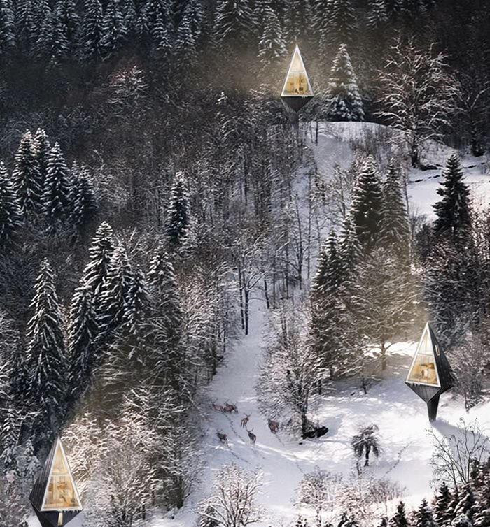 Inspirisan moćnom formom drveta, danski arhitekta Konrad Vojcik kreirao je zanimljivu savremenu kolibu u obliku slova A. Kao da se stidljivo, na prstima, prokrala u sred šume i bez krčenja zelene površine, ova kuća za dvoje zauzela je svoje mesto među visokim stablima. Opremljena je solarnim panelima i toplotnom pumpom, a ukupno ima šezdesetak kvadrata na četiri nivoa. Foto: Foto: PROMO / Behance