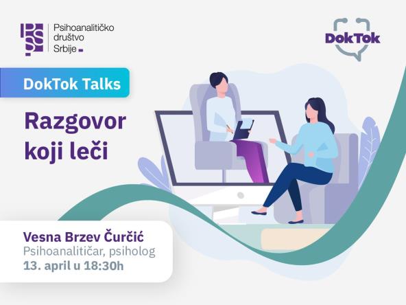 Platforma za besplatne zdravstvene konsultacije DokTok pokrenula je kampanju “Razgovor koji leči” u saradnji sa Psihoanalitičkim društvom Srbije u okviru koje je omogućila besplatnu psihološku podršku svakoga dana. Razgovori sa psihoterapeutima i psiholozima obavljaju se svakoga dana na sajtu platforme www.doktok.rs, gde građani mogu da pogledaju listu dostupnih psihologa, njihovu dostupnost i slobodne termine, kao i da zakažu svoju konsultaciju kod odabranog stručnjaka ili se odmah povežu sa nekim od trenutno dostupnih.