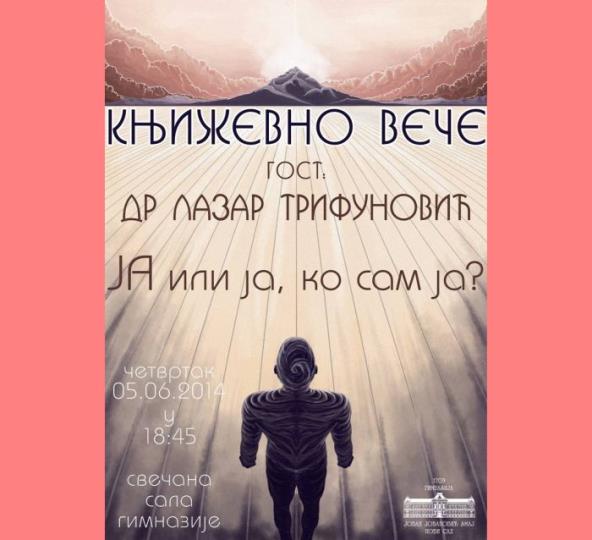 U najstarijoj novosadskoj gimnaziji "Jovan Jovanovic Zmaj" 5. juna 2014. godine u 18:30h biće održano književno veče o knjizi "JA ili ja, ko sam ja?" dr Lazara Trifunovića.