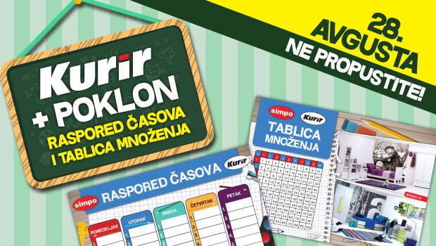 Ne propustite tablicu množenja i raspored časova, poklon uz Kurir, 28. avgusta 2015 godine.