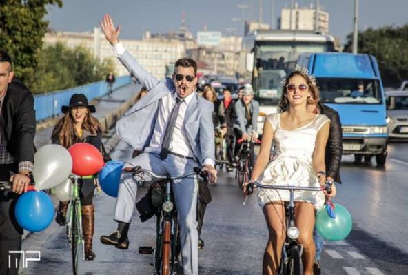 Umesto da se voze u okićenim automobilima, oni su kroz grad prošli na biciklima.