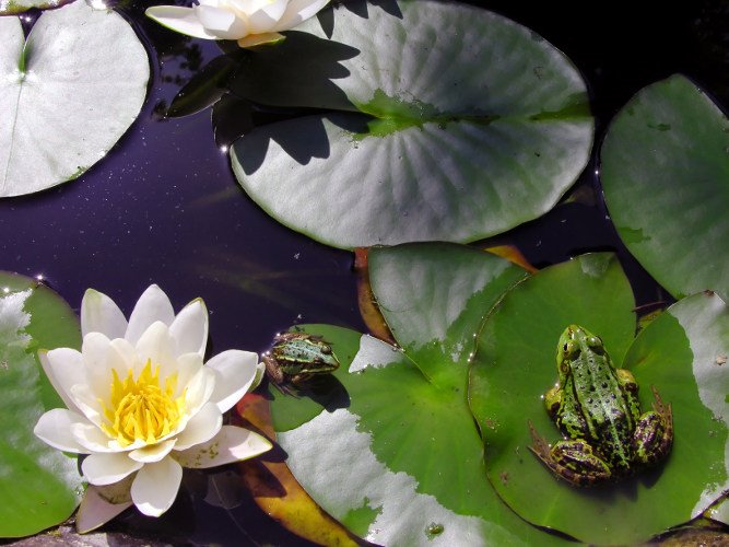 A žaba kao žaba, nije se žalila ni na šta. Ona je mirno posmatrala svet svojim velikim očima i veselo kreketala. Ko bi dobro načuljio uši, mogao je da razazna čak i razliku u kreketajima.