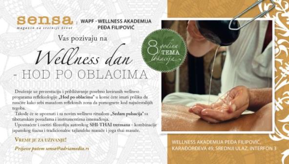 Druženje uz prezentaciju i približavanje posebno kreiranih wellness progarama refleksologije "Hod po oblacima" u kome ćete imati priliku da naučite kako sebi masažom refleksnih zona da pomognete kod najučestalijih tegoba.