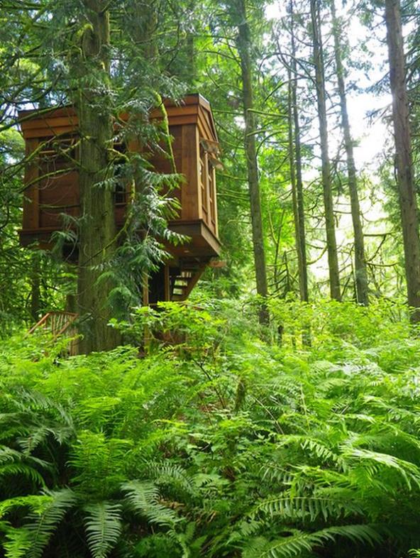 Na tridesetak minuta vožnje od Sijetla, uz reku, nalazi se ekološko odmaralište "Mesto za kuću na drvetu". Vode ga Pit i Džudi Nelson i to sa trostrukim ciljem: da se očuva priroda u kojoj su kućice na drvetu smeštene, da organizuju kulturne događaje koji će za njihovu zajednicu biti edukativne i inspirativne kao i da zasnuju centar za učenje o očuvanju prirodnih resursa. Uz glavnu kuću, posetiocima su na raspolaganju "Bonbibi", "Trillium", "Upper Pond", "Nest" and "Temple of the Blue Moon". Sve ih je sagradio Pit koji vodi i firmu za građenje kućica na drvetu i organizuje radionice na kojima svi zainteresovani mogu i sami da nauče kako da to urade. Foto: Foto: Tree Housepoint