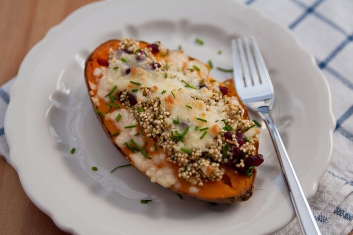 Vegetarijanski recept: zapečeni batat punjen kinoom i pasuljem