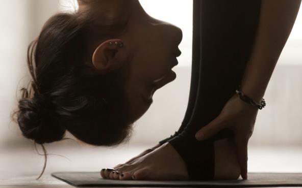 I još jedna najpopularnija obrnuta poza su pregib unapred. Postoje različite varijacije pregiba: od jednostavnijih do složenijih, gde svako, u zavisnosti od svog istezanja, bira varijaciju koja mu se sviđa i koja mu najviše odgovara. Tokom pregiba unapred, dobro je: zadnji deo nogu i leđa su istegnuti, što smanjuje opterećenje na njima i korisno je za lice. Poza ima efekat masaže na području abdomena, što ubrzava sagorevanje masti u predelu abdomena i poboljšava varenje.