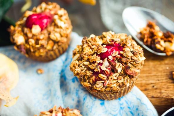 Pomešajte sve sastojke za testo i dobro umesiti da dobijete sjedinjenu smesu. Pleh-kalup za mafine podmažite biljnim uljem i brašnom, pa sipajte testo. U sredini svakog "mafina" napravite rupu pre pečenja, tako da izgleda kao čašica. Pecite 15-20 minuta na 180 stepeni C.