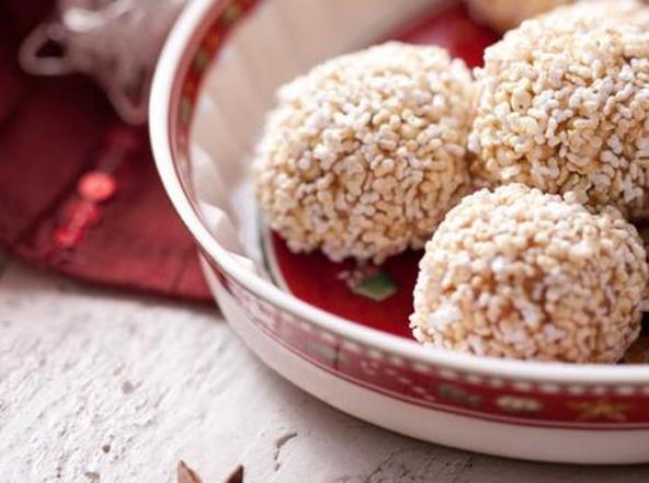 U posudi pomešajte ekspandiran proso, slad, maslac ili slatki namaz od badema, i cimet. Umočite ruke u vodu i njima oblikujte kuglice. Na tanjir stavite ekspandirani amarant, i u njega uvaljajte svaku kuglicu.