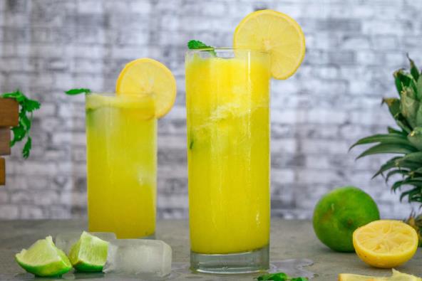 1. U blenderu pomešajte kriške ananasa, sok od limete i koren đumbira.