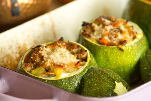 Tikvice prepolovite i izdubite. Crni luk, pečurke, šargarepu i sredinu tikvica isecite na kockice. Pripremljeno povrće izdinstajte pa dodajte pirinač i peršun. Dobijenom masom napuniti tikvice, stavite ih u vatrostalnu posudu i prelijte vodom da ogreznu. Punjene tikvice pecite u rerni oko pola sata, te ih poslužite uz raženi hleb.