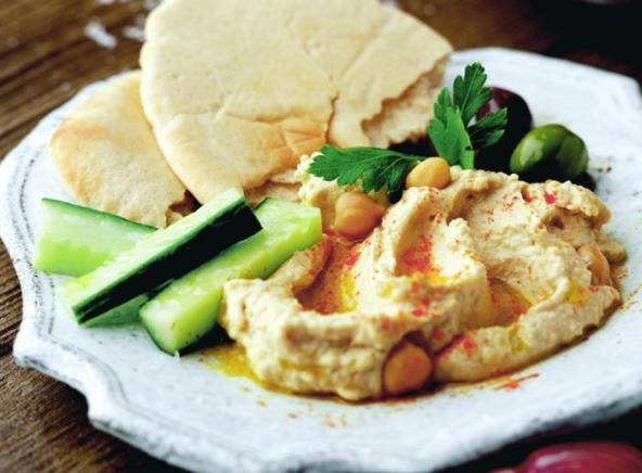 Dodajte isceđene i isprane leblebije iz limenke, tahini ili maslinovo ulje i limunov sok pa promešajte. Začinite po ukusu solju, biberom, mlevenim kuminom i ljutim papričicama. Umešajte i sitno naseckane listiće peršuna ili nane. Prebacite u neku posudu i ostavite u frižideru da se dobro ohladi. Pre posluživanja ukrasite iseckanim maslinama ili pospite poprženim semenkama susama.